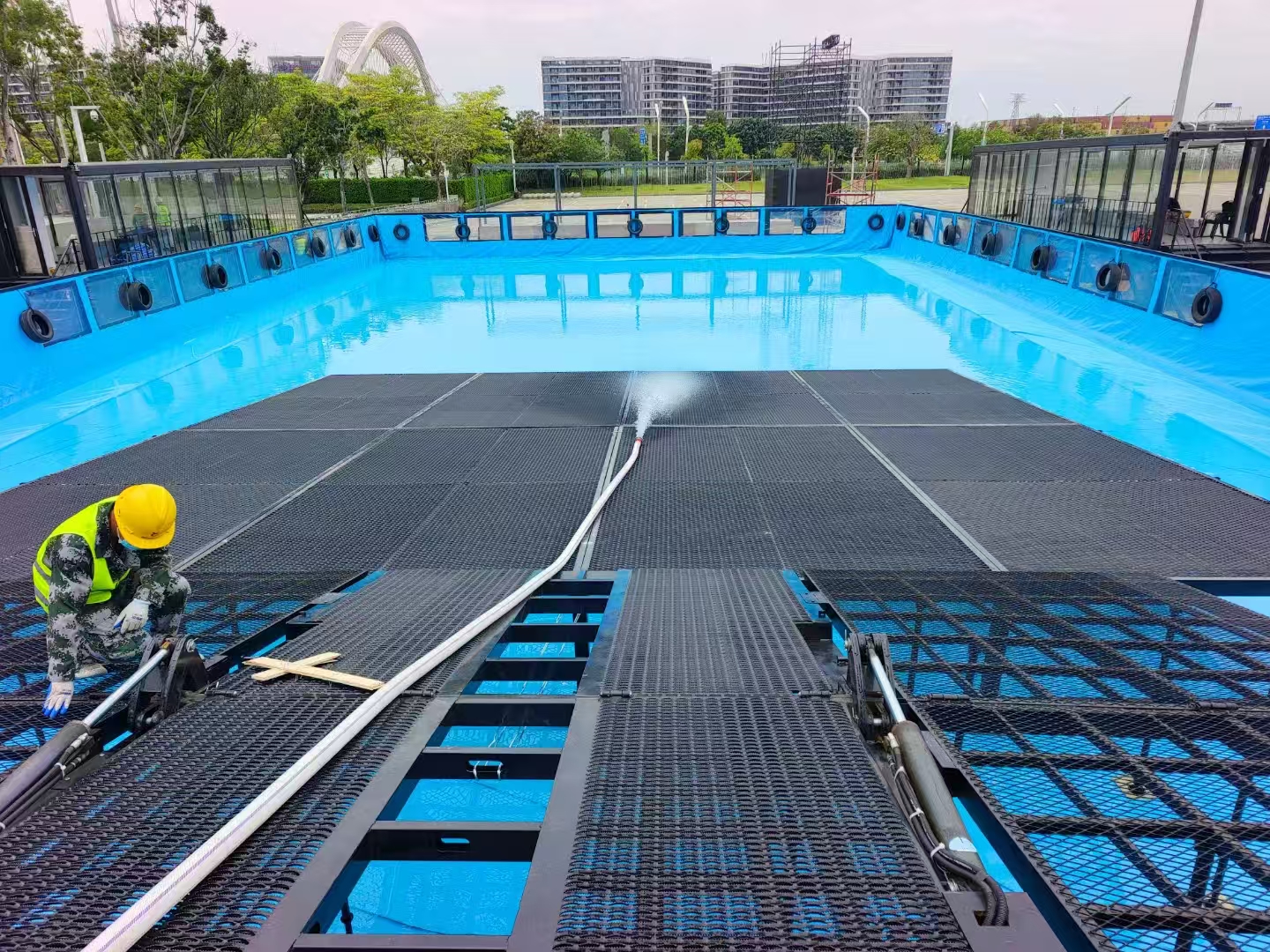 拱形障碍装置能够测试车辆的通过性和底盘高度;高空平衡装置可检验车辆的稳定性能和重心分布;四驱系统测试设备专门用于评估四轮驱动系统的性能;阶梯状路段可测试车辆的悬挂系统和通过能力;轮胎阵列路段能检验车辆的转向性能和轮胎抓地力;模拟凹陷路面可评估车辆悬挂系统的适应能力;仿炮弹坑装置能测试车架强度和悬挂韧性;仿木材颠簸路段可检验车辆减震性能;双轨桥梁结构能测试车辆轮胎的附着力;不规则起伏路面可评估车辆整体刚性;倾斜坡面能检验车辆侧向稳定性;沙质场地可测试车辆在松软路面上的通过性能。