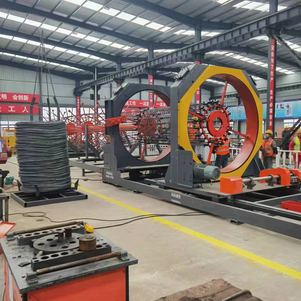 该设备实现了钢筋自动弯圆、焊接、切断三步数控自动加工,大大简化了生产流程。
